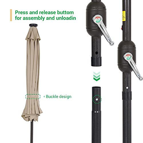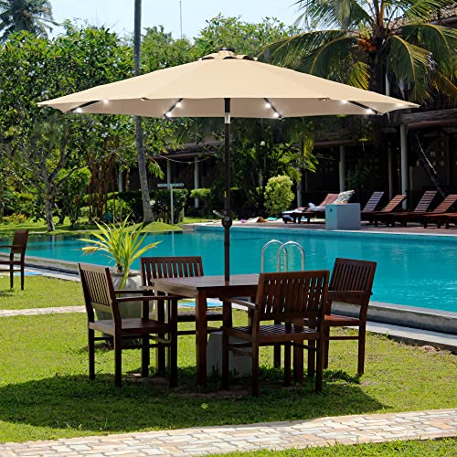 • 9FT patio umbrella with solar lights umbrella outdoor patio with Push Button Tilt and Crank Market Umbrella 8 Sturdy Ribs UV Protection Waterproof for Garden Deck Backyard Pool