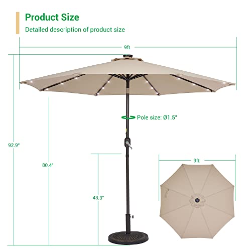 9FT patio umbrella with solar lights, umbrella outdoor patio with Push Button Tilt and Crank Market Umbrella 8 Sturdy Ribs UV Protection Waterproof for Garden Deck Backyard Pool