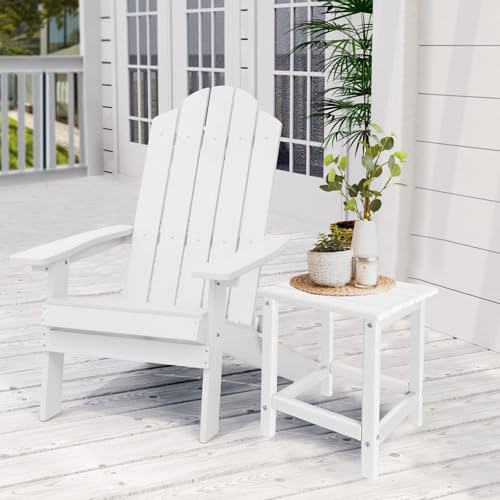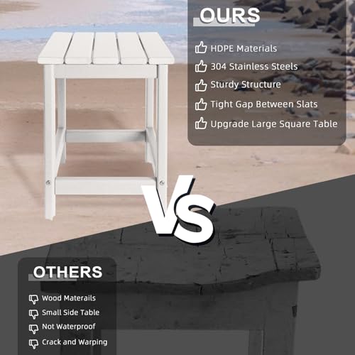 Adirondack Side Table Outdoor, HDPE Small Outdoor Table for Patio,Outside End Table for Porch, Deck, Pool, Weather Resistant/Easy Maintenance/Indoor or Outdoor Use, White