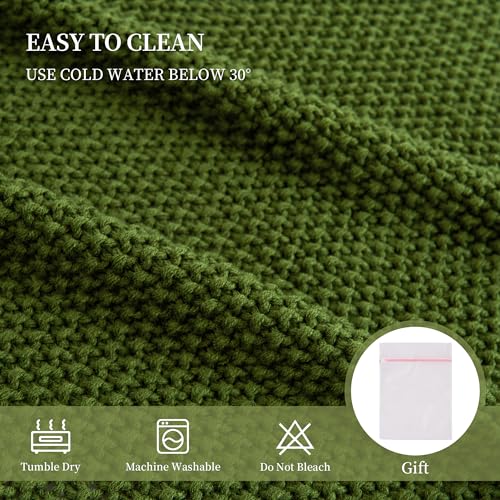 • Aganear Knit Throw Blanket for Couch Cable Knitted Throw Blanket for All Seasons Soft Cozy Lightweight Knit Blanket for Living Room Bed Office Travel Boho Decor 50×60 Olive Green