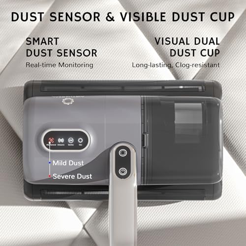 Multi-Function Technology: This unit combines advanced ultrasonic waves, UVC sterilization, and dust sensing for comprehensive cleaning. The UVC light turns on upon contact with surfaces for enhanced sanitation, and the built-in heating feature reaches as much as 140°F to do away with dust.