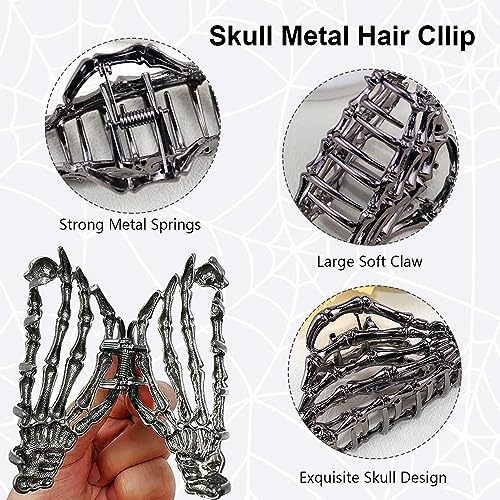 Wide Application: The metal hand shaped hair clip with unique skull shaped designs, perfect for trip, shower, barbershop, cleaning, makeup, cooking, eating, bathing or work, they keep hair neat and dry and also great for on a regular basis wear, parties, banquets, dates, weddings, and more.The french barrette metal hair clips for thick hair are also suitable for different colors hair,which make you charming on Halloween party.