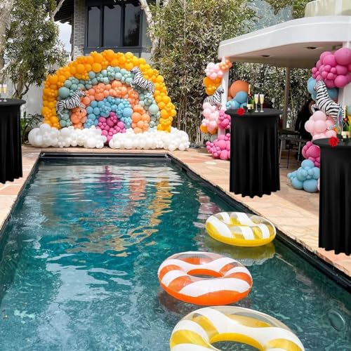 Albassa 2 Pack Cocktail Table Covers 32″x 43″ Spandex Stretch Round Cocktail Tablecloths with Wavy Drapes Fitted High Top Bar Table Skirt for Wedding Party Banquet (Black, 2 PCS)