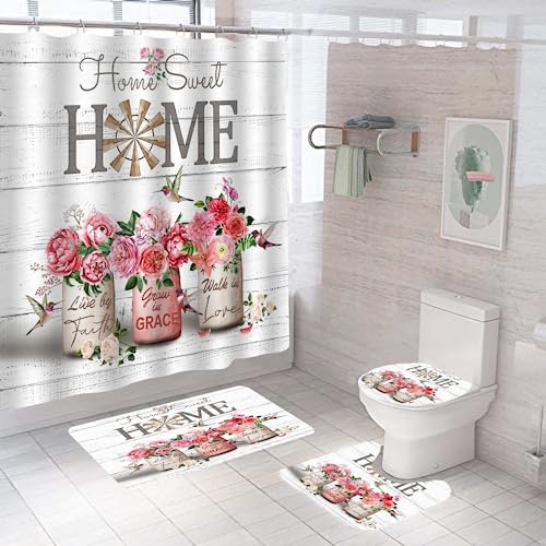 Unique design & Application- This Home Sweet Bathroom Sets pattern adopt cutting-edge of High Definition digital printing technology,More real, clear, no fade. This waterproof shower curtain is beautiful and generous, and may also be easily installed in your bathroom, apartment, hotel, dormitory and so forth other places to offer protection to privacy.