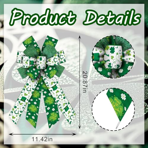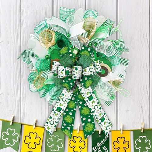 • Alibbon Large St Patricks Day Bows for Wreaths St Patricks Day Wreath Bows Irish Shamrock Bows for Front Door St Patricks Day Decor Glitter Green Bows for Parade Indoor Outdoor Party Decor