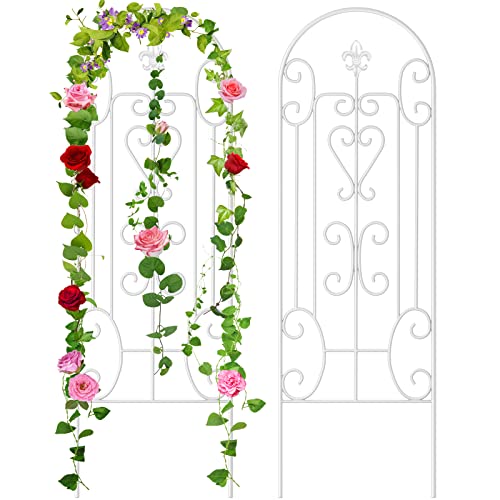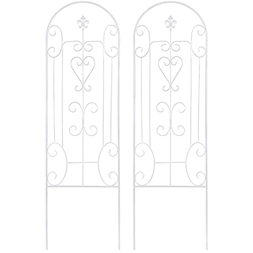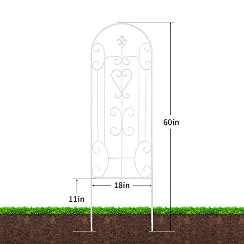 Dimension: 2 pack, 60″ high x 18″ wide, perfect size to work as wall rustproof black iron garden trellis for hiking plants clematis rose cucumber,rustproof White iron arbor garden trellis, proper size for within the large planting pot, garden trellis small flower pots with trellis working well with your planters in patio edges and raised garden bed corners to be metal trellis,out of doors decorative trellis,trellis for potted hiking plants,tall trellis for hiking plants,trellis for clematis.