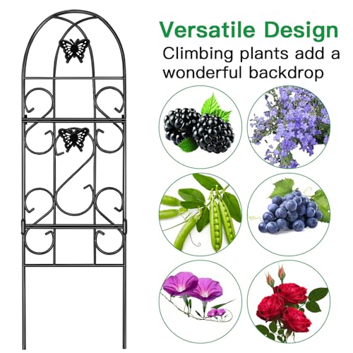 STYLISH & RUSTPROOF: The butterfly outside decorative trellis is made of iron with rust proof black powder coated finish, which makes it is usually used for both outside and indoor decoration to be rustproof clematis trellis, hiking plant trellis,hiking rose trellis,cucumber garden trellis,flower trellis,grapes trellis,iron trellis for hiking plants,metal garden trellis,plant trellis for pots,planters with trellis,planting pot with trellis,potted plant trellis,rose arbor trellis.