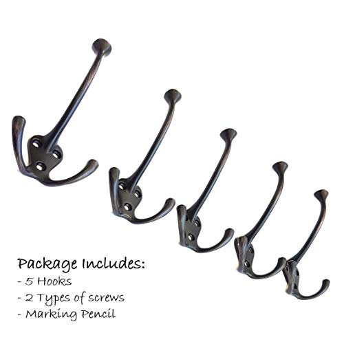 SUPER EASY TO INSTALL – This Classic wall mounted triple hook is super easy to install in your house. Each hook comes with 6 mounting screws of two different length options (2 of 18mm/0.7″ AND 2 of 30mm/1.2″) and marking pencil in a package. You’ll be able to use our 1.2″ screws to mount Ambipolar hooks directly to a wall, when dealing with thick surfaces , such as closets or doors You’ll be able to use our 0.7″ screws – the unused screws are a gift to you.