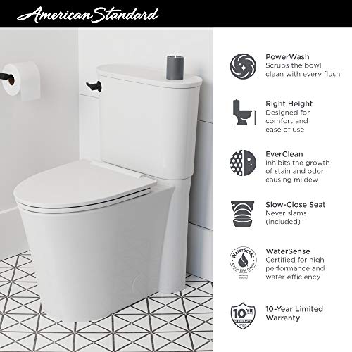 The Studio S Right Height Skirted Bathroom from American Usual is a minimalist design that enhances the up to date aesthetic of the Studio S Collection. Smooth-sided, concealed trapway enhances the look and makes cleaning easier by getting rid of the hard-to-succeed in curves and crevices where dirt hides. For superior cleanliness, the Studio S Bathroom includes a PowerWash rim that releases a surge of water to clean the bowl with each flush. EverClean coating inhibits the expansion of stain- and odor-causing bacteria, mold and mildew.
