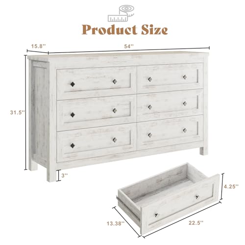 Elevate your house decor with our Vintage 6 Drawer Dresser, designed to infuse warmth and ambiance into any space. The rustic, vintage design enhances the coziness of your room, creating an inviting atmosphere that’s perfect for a farmhouse aesthetic. This clothes dresser features six spacious drawers, offering ample storage for clothes, linens, and other essentials. Its versatile design makes it suitable for quite a lot of settings, including the bedroom, living room, entryway, hallway, or nursery. Also can be utilized as TV stand. No matter where you place it, this drawer dresser provides both functional storage and a fashionable touch. Constructed entirely of durable wood, natural wood dresser ensures long-lasting use, at the same time as the anti-tip design adds an extra layer of safety. Plus, the pre-installed drawer slides make assembly quick and easy, allowing you to enjoy your new piece of furniture with minimal effort. Add charm and practicality to your house with our Six-Drawer Vintage Dresser, the easiest addition to any room. Specification: Color: Rustic Grey/ Dark Oak/ Rustic Brown/ Distressed White Material: Engineered Wood Dimensions: 54“L X 15.75″D X 31.5″H Cable Management: No Tipover Restraint Device Included: Yes Drawers Included: Yes Drawers Number: 6 Beneficial Rooms -Living Room -kitchen -Place of work -Bedroom -Circle of relatives Room
