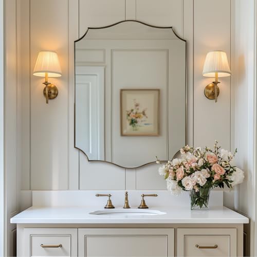 【Sophisticated Curved Design】: With captivating asymmetry and irregular shapes, this brushed gold vanity mirror is a murals. Whether you have got a latest, minimalist, rustic, or eclectic bathroom decor, our irregular wall mirror effortlessly blends in, adding a touch of individuality and character to any space