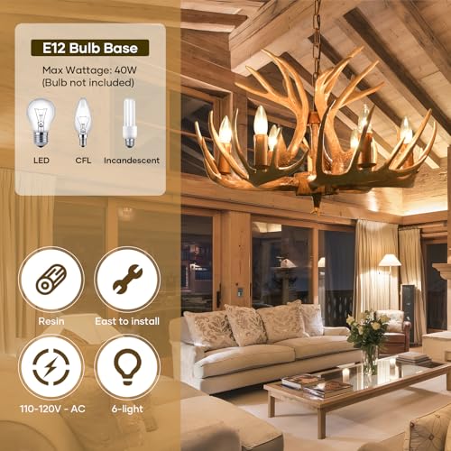 【Easy to Install Antler Chandeliers】Deer antler chandelier inside includes the entire necessary assembling and installation parts, a detailed, easy-to-be aware installation instructions. Before installation, please prepare the E12 lamp upfront(No light bulb inside the package). If you want the installation video, you’ll be able to told us.