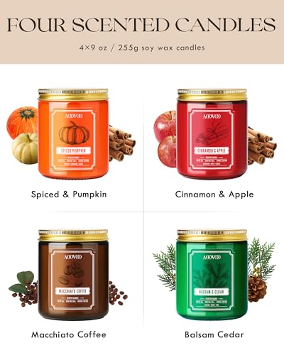 4 Pc Scented Candles: Indulge within the sweet Macchiato Coffee, the warming Spiced Pumpkin and Cinnamon Apple and the fresh Balsam Cedar found in our candles. With aoovoo’s carefully curated scents, you are in for a one-of-a-kind aromatherapy journey.