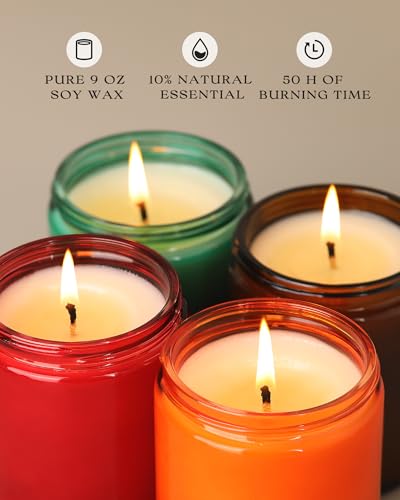Soy Wax Candle: Differing from blended soy wax, our candles are 100% soy wax, promoting a more fit environment, especially for pets and children. 36oz (9oz every) , lasting as much as 200 hours of burn time.