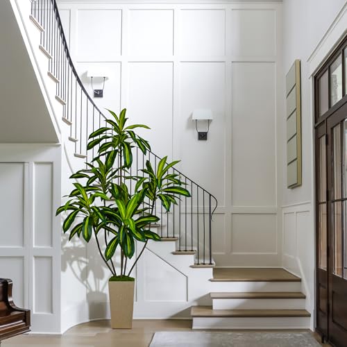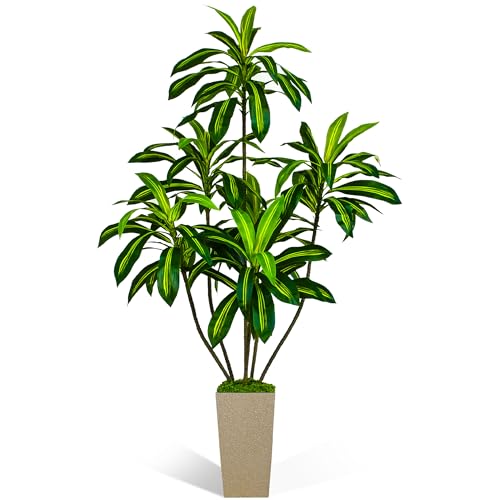 • Artificial Dracaena Tree 6FT 6 Feet Tall Fake Tree for Home Decor Indoor with Modern Style Planter Artificial Silk Tree for Home Office Living Room Indoor Lifelike Lush Champagne