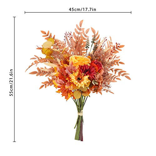 LASTING BEAUTY: For a touch of whimsy and romance, premium silk material flowers and plastic with iron inside wrapped of the basis give our fall flowers bouquets a lifelike appearance