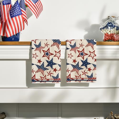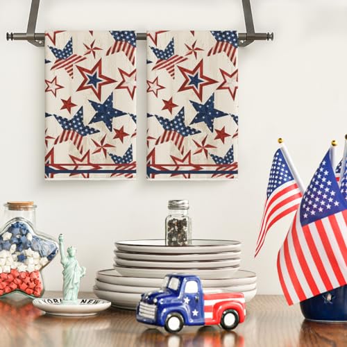 Artoid Mode Strip-Shaped America Stars Patriotic 4th of July Kitchen Towels Dish Towels, 18×26 Inch Seasonal Summer Decoration Hand Towels Set of 2