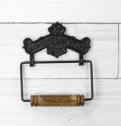 AuldHome Design Farmhouse Cast Iron Toilet Paper Holder; Wall Mount Vintage Decor Style Black TP Hanger