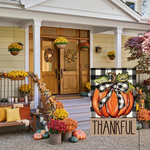 Vibrant Thanksgiving Design: Includes a pumpkin and thankful holiday buffalo plaid pattern that may be best for fall.