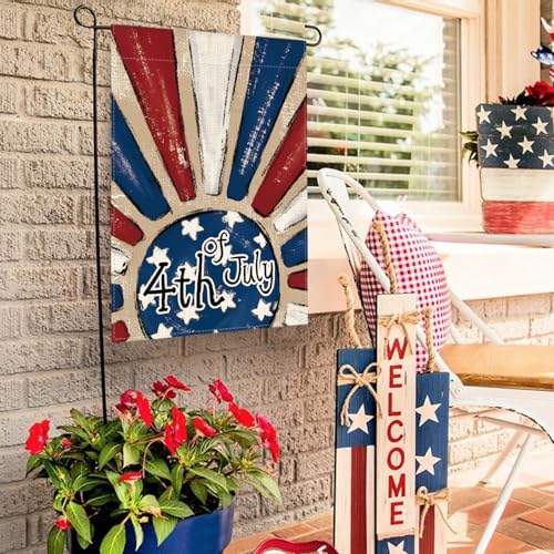 • AVOIN colorlife Patriotic 4th of July Garden Flag 12×18 Inch Double Sided Outside Rustic Sunburst Holiday Yard Outdoor Decoration
