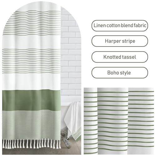 【HIGH-QUALITY HOME DECOR】 Produced from a sturdy and soft Linen Cotton blend, this tassel shower curtain has a beautiful texture. The buttonholes are ideal for use with hooks or rings.