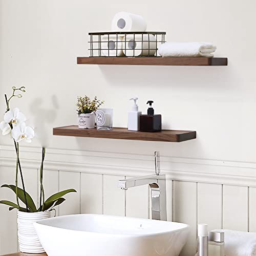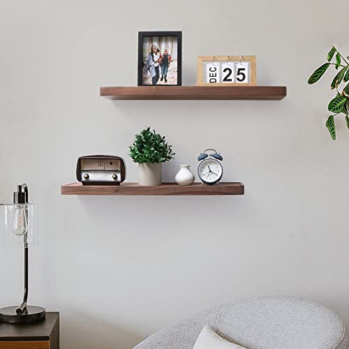 Axeman Walnut Floating Shelves for Wall 24 Inch | 24W x 6D Solid Walnut Wood Shelves Set of 2 | Rustic Natural Wooden Shelves for Room Wall Decor | Solid Wood Shelves for Living Room Bedroom Kitchen