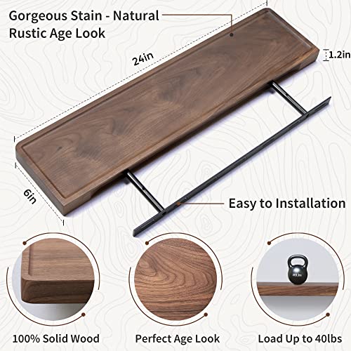 • Axeman Walnut Floating Shelves for Wall 24 Inch 24W x 6D Solid Walnut Wood Shelves Set of 2 Rustic Natural Wooden Shelves for Room Wall Decor Solid Wood Shelves for Living Room Bedroom Kitchen