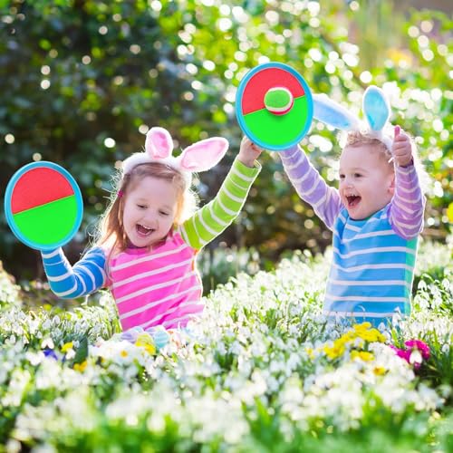 Out of doors Toys for Kids – Enjoy endless fun with this classic 90s toss and catch game which includes 4 paddles, 4 sticky balls and a storage bag, perfect birthdays Valentine’s Day gift easter basket stuffers for boys girls aged 3+ on the pool, beach, yard, lawn or playground