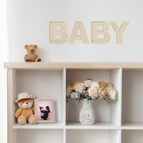 Not Easy to Break: The package includes 4pcs of wooden rattan letters(BABY), Our 8 inch baby rattan letters are expertly crafted from plywood with a high-quality 5mm thickness, they combine durability and elegance, providing a lasting appeal so one can captivate your guests and make your space the envy of everyone