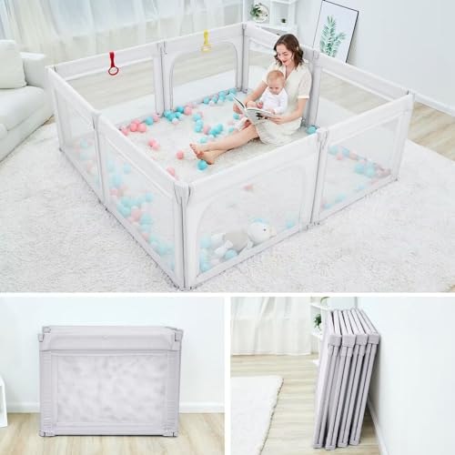 🥰【Easy to Assemble & Sturdy Playpen】It’s easy to put together so long as following the instruction or installation video, we provide multi-ways that can assist you included video calling service if you want it. When the playpen is installed, the fabric and soft padding will wrap tightly around the steel pipe, as a way to make the playpen stable, and the strong suction cups on the bottom makes it difficult to tip over or move the play yard
