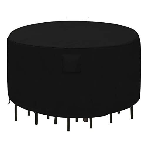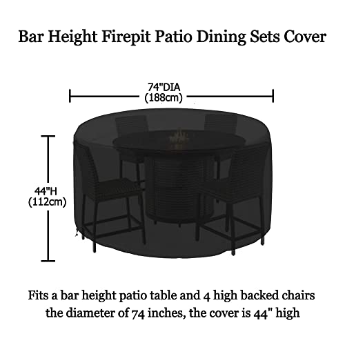 74 Inch Tall Round Patio Table & Chair Set Cover for 5 piece Bar Height Patio Set with Fire Pit – Nice fit for the bar height table and 4 chairs. Protect our out of doors bistro table and barstools from blowing rain, sun, snow, dirt, and leaves through the winter/summer months.