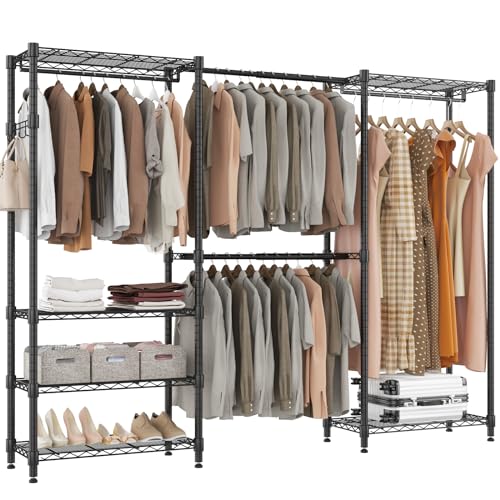 【Ample Storage Capacity】 Equipped with 6 shelves, this freestanding garment rack provides extensive space for hanging clothing and storage bins. Make the most of additional storage at the upper shelves for less regularly used items