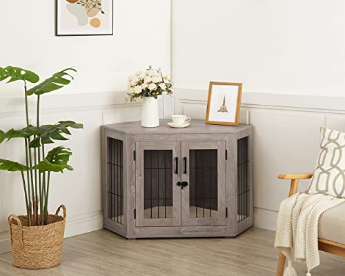 HIGH QUALITY: This furniture corner dog kennel is heavy duty, sturdy, functional and elegance having a look. This corner dog kennel table is designed with high-quality metal wire bars. Gives puppy a place of its own and helps a nervous puppy feel protected and calm down