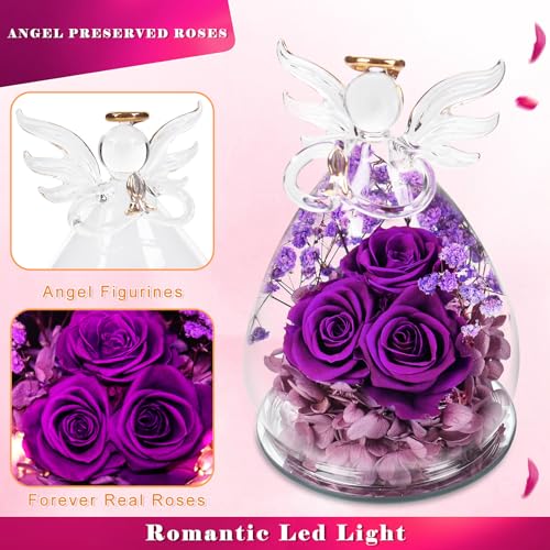 ETERNAL ROSES FOR FOREVER LOVE– Green & Sustainable and No Care Required: The preserved rose in glass angel figurine is flawless for a lasting keepsake, lovely roses made of fresh flowers, no watering required. The rose flower in glass dome is perfect and impeccable. It is as full of infinite hope and beauty as a rainbow. The angel glass cover is made of transparent glass, both glass and base are easy to clean. keep the real roses in a cool place, without management, will also be stored for 3-5 years.