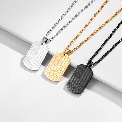 Best Dad Son Brother Grandson Grandpa Boyfriend Husband Ever Necklace, Stainless Steel Flag Dog Tags Jewelry, Birthday Valentine Christmas Father’s Day Gifts