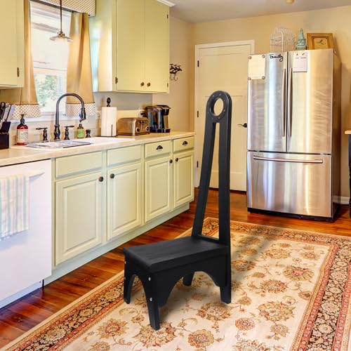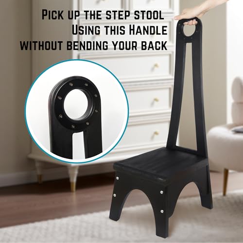 Besuerte Wooden Step Stool with Tall Handle, One Step Stool for Adults with Non-Slip Mat, Multipurpose Step Stools for Adults for Kitchen, Bathroom and Bedroom, Black