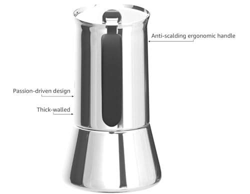 Bialetti – New Venus Induction, Stovetop Coffee Maker, Suitable for all Types of Hobs, Stainless Steel, 4 Cups (5.7 Oz), Silver