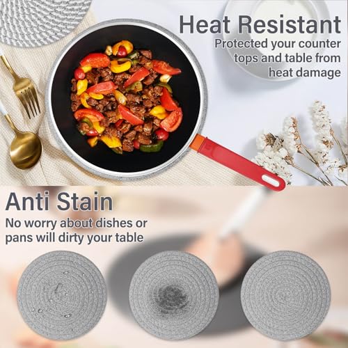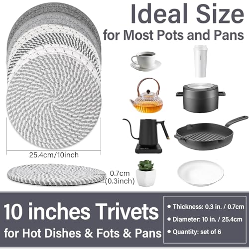 Trivets Set – You’ll receive 6 pieces of trivets for hot dishes. Measuring 10 inches in diameter and 0.3 inches thick, These hot pads for kitchen blend Boho and country farmhouse styles, perfect for your kitchen and dining table.