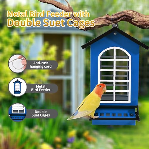 🐦The hanging bird feeder for outdoors is made of durable metal material, strong and durable, suitable for a wide variety of weather, and squirrels cannot damage your metal bird feeder. The sturdy lanyard means you shouldn’t have to worry about the rope breaking in the sun or in the sun.