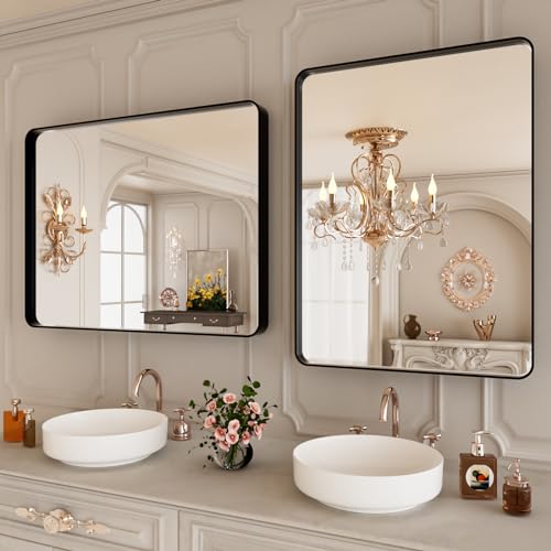 H-D Glass, Super Clear: Our black bathroom vanity mirror adopts HD glide glass technology to verify 1:1 restoration of real image, no distortion, no shadows, super clear;