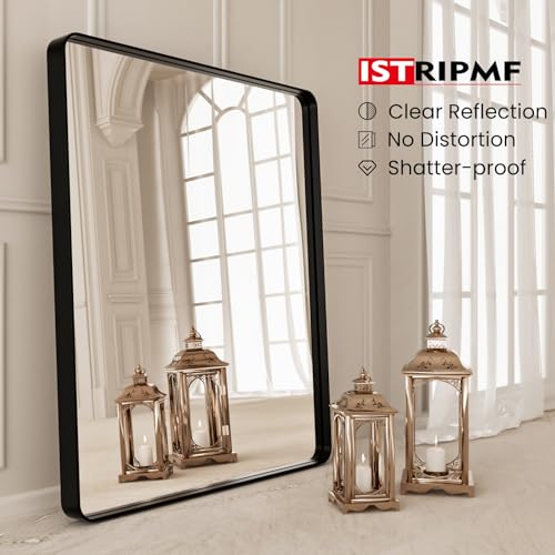 High-quality Metal Framed Mirror: With round corner metal frame, ISTRIPMF black bathroom mirror are designed with high-grade alumium alloy frame. Anodizing process makes the metal frame waterproof and antirust, durable and non-deformed shape;