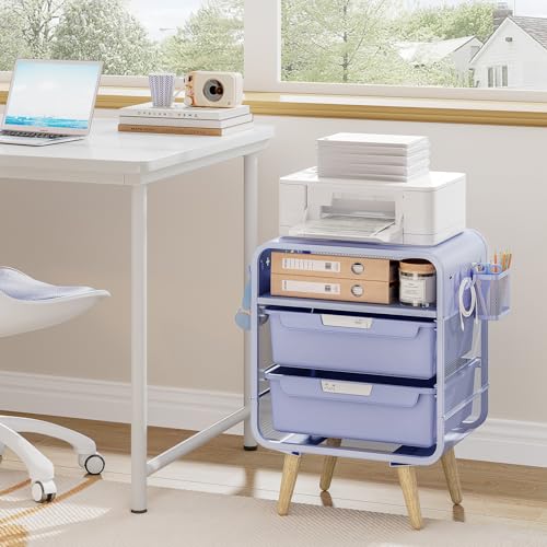 【HIGH QUALITY MATERIALS】 Modern beautiful blue end table are made of smooth powder-coated metal, which make it rust-resistant and durable. Rugged with 2 thickened drawers, each one can hold up to 11 pounds. The slide-out drawer design, smooth slide rails and ergonomic handles make it easy to open or close