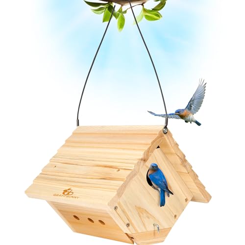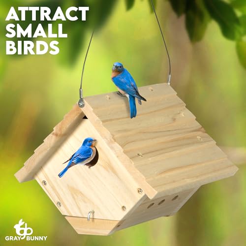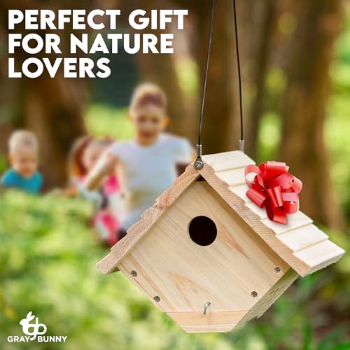 ROBUST CEDAR BUILD: Premium cedar wood forms the Gray Bunny Wren Birdhouses, featuring 1/2 inch solid walls and a sturdy roof. These durable shelters are perfect for wrens, house finches, and chickadees.