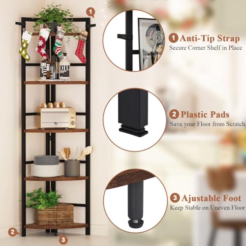 Versatile Corner Shelf: This industrial-chic corner shelving unit is designed to maximize unused corner spaces, providing ample storage for books, plants, decor pieces, and more across its five open shelves.