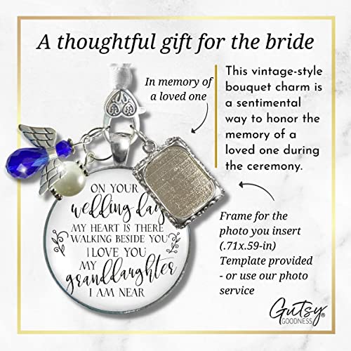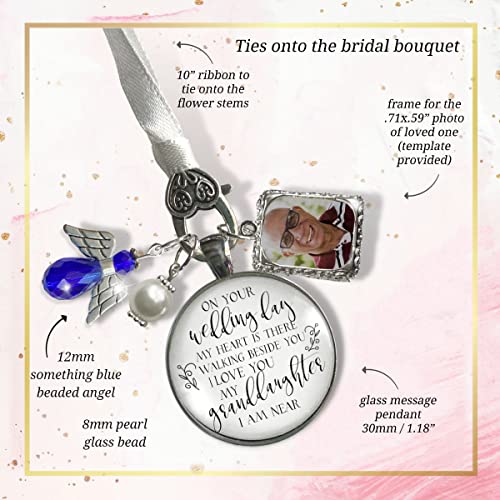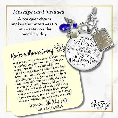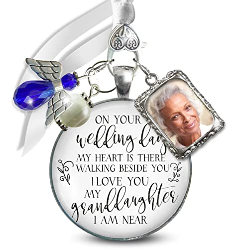 Bouquet Photo Charm Wedding Memory Something Blue Angel – I Know You’d Be Here If Heaven Honor Love One, Silver Finish Handmade Bridal Jewelry White Glass Pendant 2 Frames Gift Message & Box for Bride
