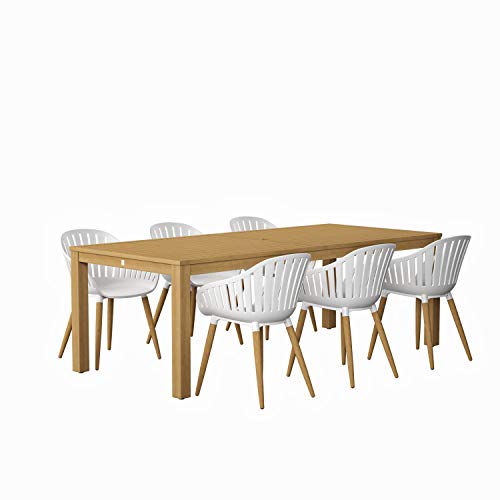 7-Piece Set: This set includes 6 top quality 100% FSC certified eucalyptus wood beautiful dining chairs and 1 rectangular table. This set is ideal for both indoors and outdoors and will make your home ready to enjoy with friends and family.