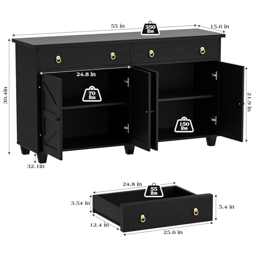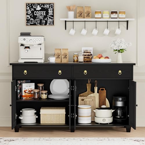 Versatile Storage Solution: This spacious buffet cabinet offers ample storage with 2 large drawers, 2 cabinets with 4 doors, and adjustable shelves, absolute best for organizing tableware, kitchen appliances, and spices.