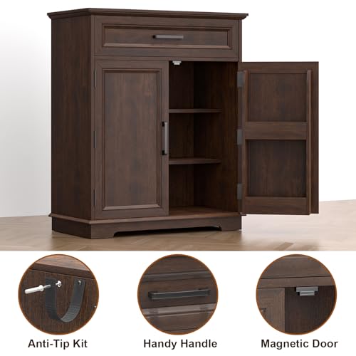 【Versatile Usage】 Whether you wish to have living room storage for collectibles, entry organizer for keys, buffet cabinet for cookware, or even end table for bedroom, the storage cabinet with drawer & storable door is a smart choice