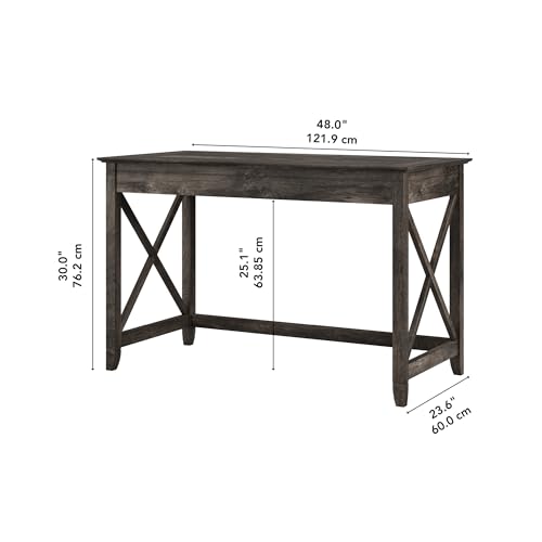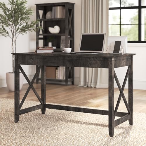 Take on your daily tasks from the comfort of a spacious personal work area, even in small office environments. The Bush Furniture Key West 48W Writing Desk offers more than enough room to spread out with a laptop and paperwork as you surf the web, pay bills or check the mail. Featuring side panels with unique X pattern accents, this office desk creates a relaxed and airy style supported by a sturdy and attractive post leg design. The durable work surface has a weight capacity of 200 pounds so you can confidently keep books and other work materials close by. Measuring 48W x 24D x 30H, this Writing Desk is perfect for use as a sofa table, console table or personal work area and is finished on all sides to look great facing any direction. Expand your workspace with a variety of coordinating items including Desktop Organizers (sold separately) and let the Key West Collection turn your home office or living room into an island escape. Your choice of casual finishes blends seamlessly with homes that embrace coastal and farmhouse decor. This small computer desk is tested to meet ANSI/SOHO quality standards for safety and performance and is backed by the Bush Furniture 1 Year Manufacturer’s Warranty. See the full collection for coordinating items available.