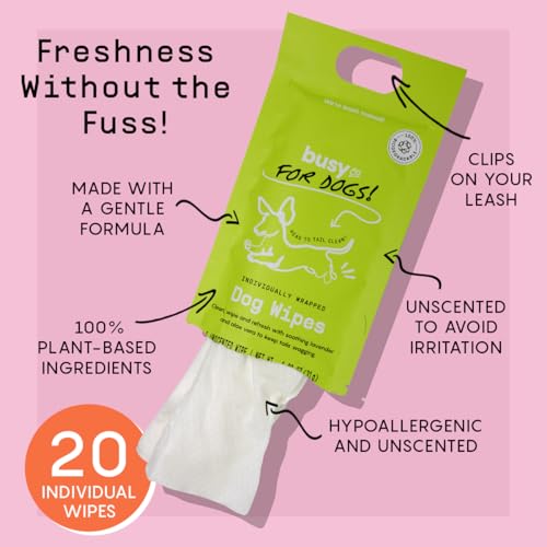PORTABLE & INDIVIDUALLY WRAPPED: Our 100% plant-based dog wipes come in convenient single-use pouches, which means that they are easy to use and portable. Throw them in a pocket, in a treat bag, or simply statch them around the house. Every wipe also includes a space to easily attach to a leash or belt – making them extra routine-friendly.